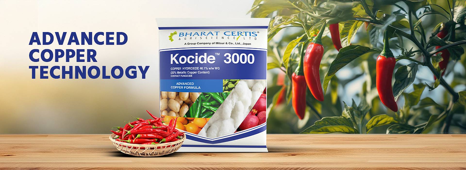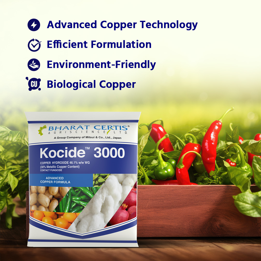 Kocide 3000, a state-of-the-art fungicide, is the ultimate solution to chilli farming challenges. With Copper Hydroxide 46.1% WG, it ensures long-lasting and effective disease control.